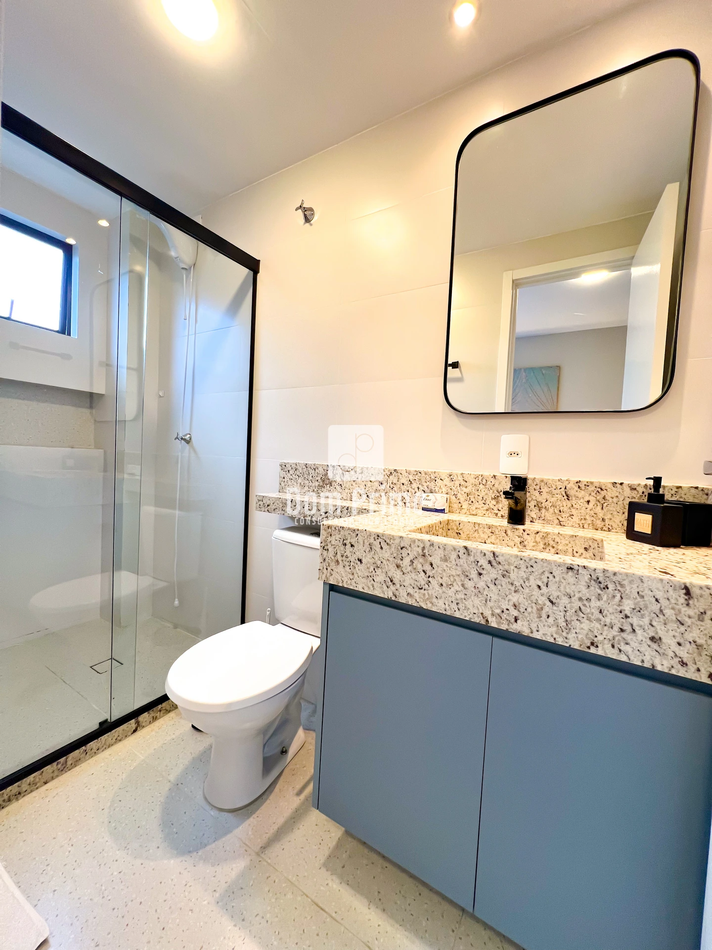 - Banheiro com box e armários
