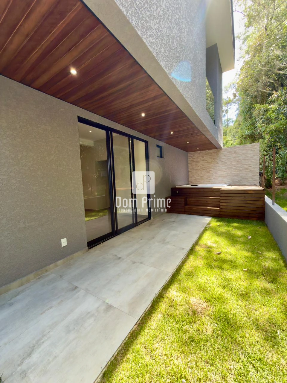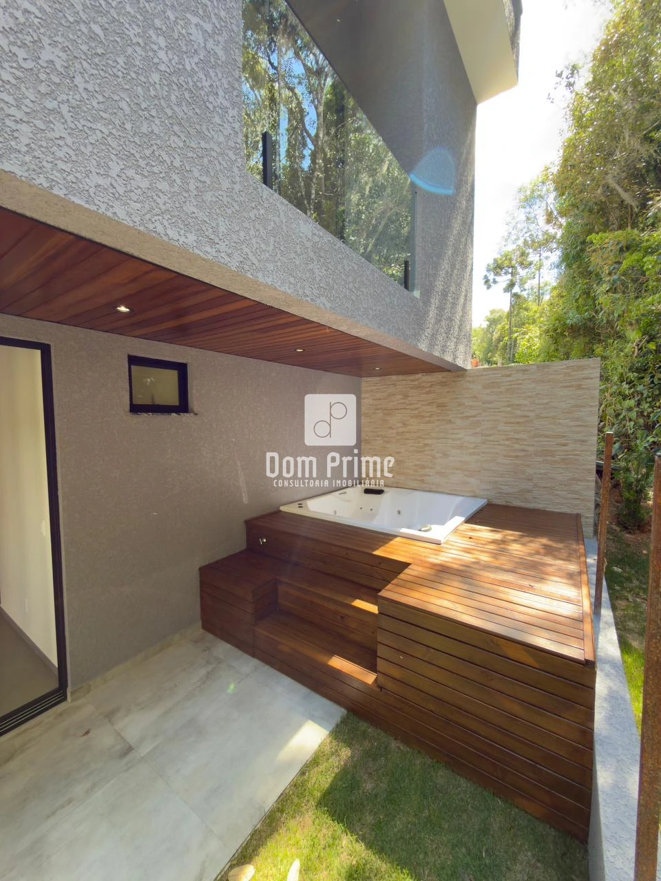 ✅Área externa com gramado, deck de madeira e hidromassagem para momentos de relaxamento